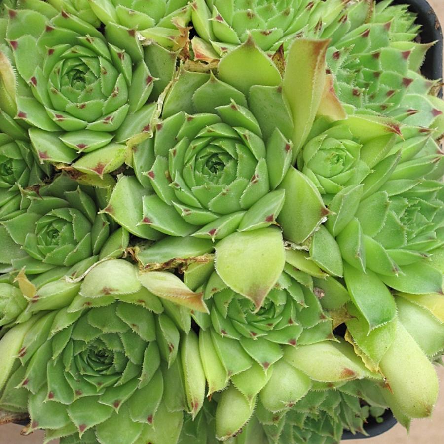 Молодило Tip Top отличается довольно мелкими розетками, которые быстро размножаются. Листья сочные, бледно- зеленые, привлекательные с наконечниками красно-коричневыми. цветом .