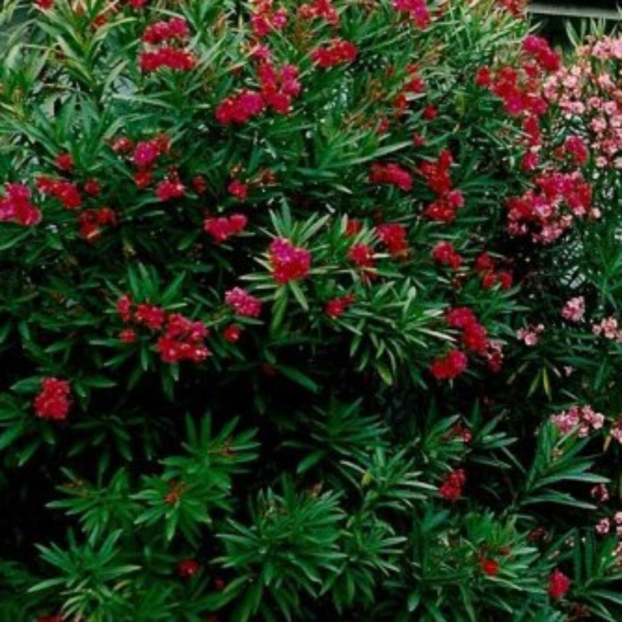 Олеандр обыкновенный Гектор (лат. Nerium oleander Hektor) - крупный вечнозеленый кустарник. Стебли буроватые. Листья глянцевые, ланцетные, темно-зеленые. Цветки яркие, крупные, состоят в щитковидных соцветиях. Плоды - листовки диаметром до 10 см. Внимание! Олеандр - ядовитое растение, поэтому при его культивировании требуется осторожность.