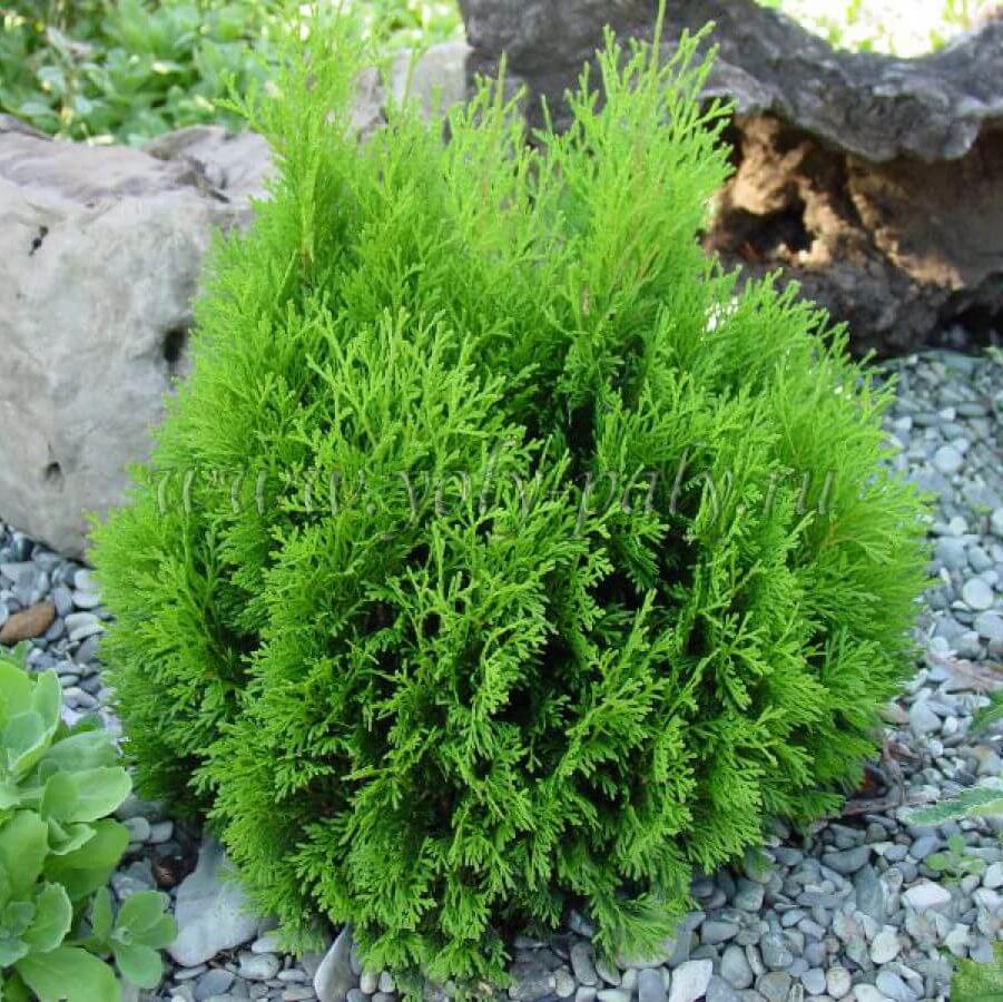 Туя западная Miky - карликовый хвойный кустарник с ширококонической формой. Растет медленно, по 8 см в год. В 10 лет достигает 1 м в высоту, в 20 лет высота 1,6-2 м диаметр кроны 1 м. Хвоя нежная, темно-зеленая, блестящая. Сорт предпочитает солнечные места.